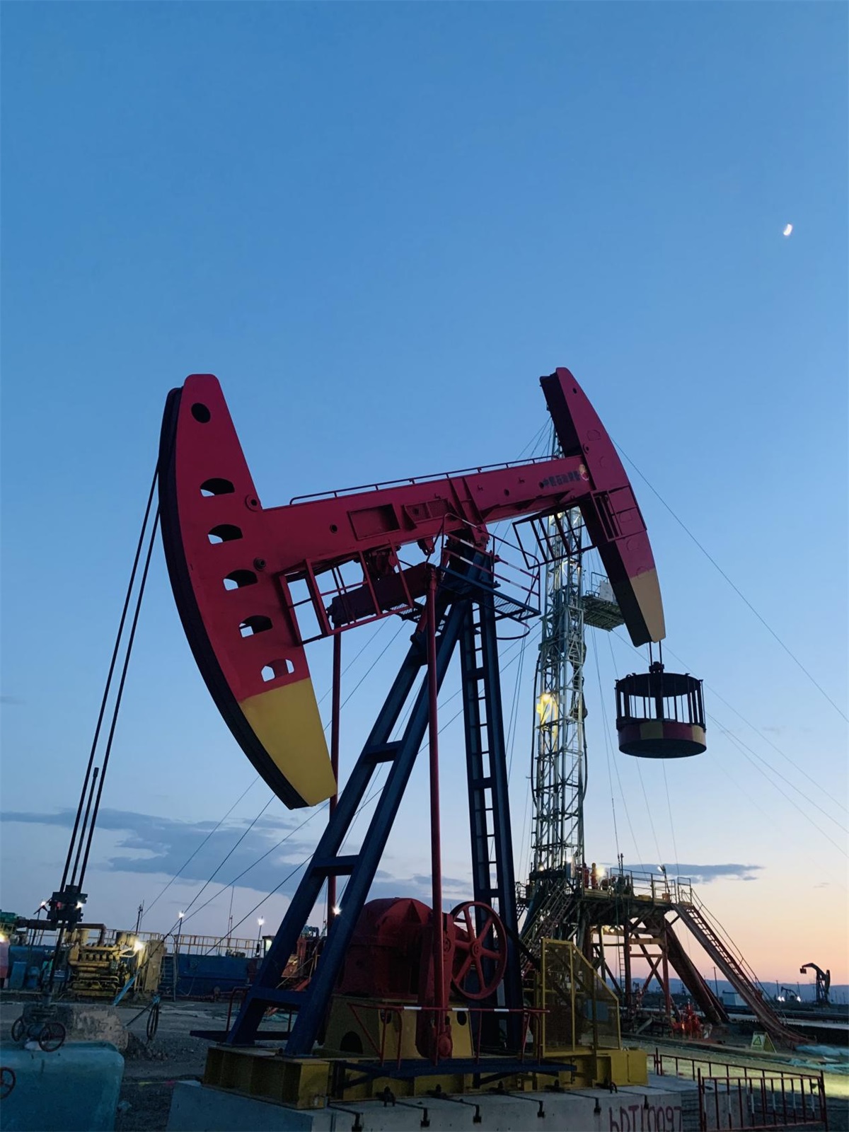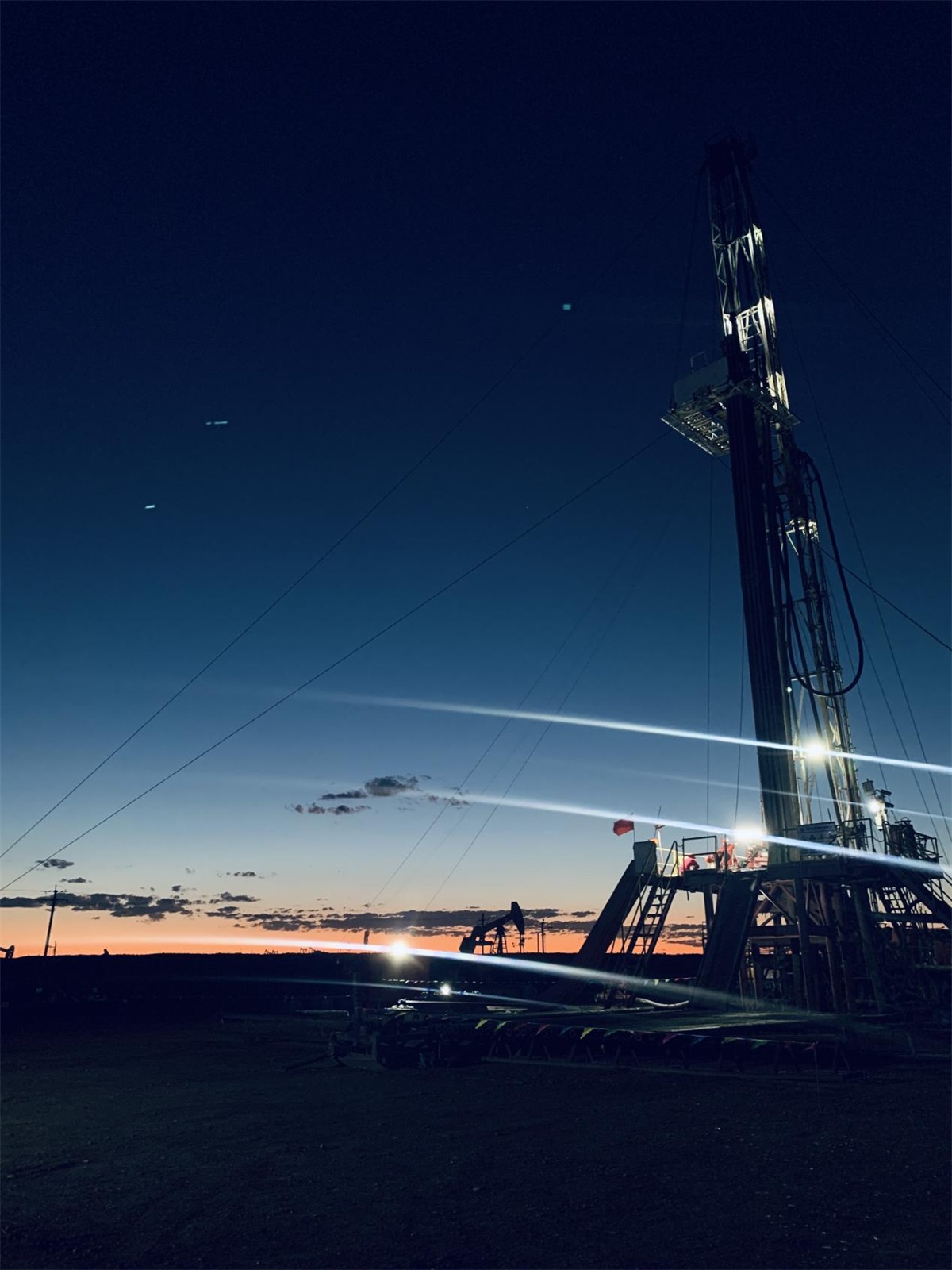 一座座“發(fā)光”的鉆塔,猶如一個個出現(xiàn)在眼前鋼鐵巨人,他們屹立在隔壁、沙漠,夜空中,鉆塔頂端閃爍的燈光,轟隆隆的機械聲,施工井場在夜色的襯托下顯得沸騰又繁忙。夜晚更是絢麗多彩,井架上的彩燈像繁星一樣,點綴著夜空,給正通施工現(xiàn)場增添了迷人的色彩。