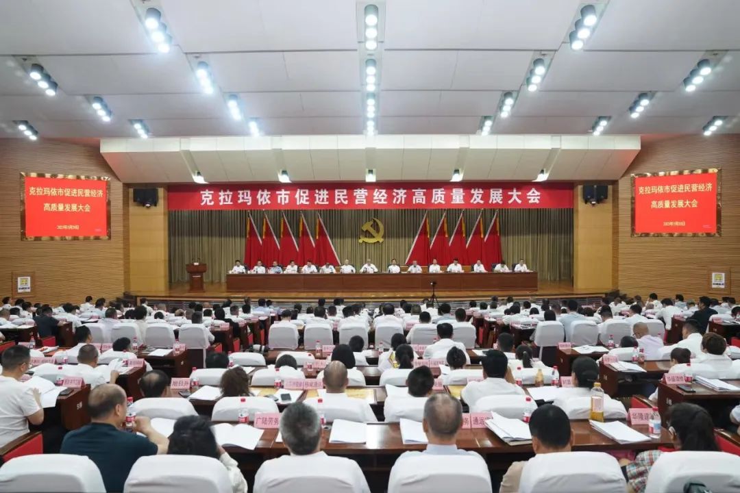 圖為克拉瑪依市召開促進民營經濟高質量發展大會。(圖片轉自克拉瑪依融媒)